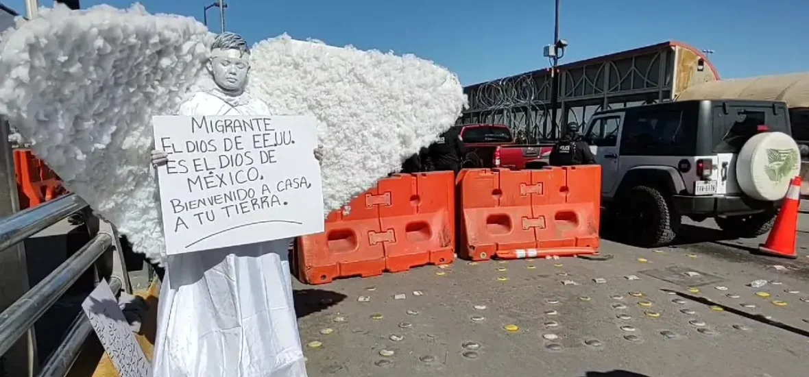 Con alas blancas y un cartel en las manos, un ángel se colocó la mañana de este jueves en el Puente Internacional Paso del Norte de Ciudad Juárez, para recibir a los migrantes deportados por este cruce. Con el mensaje: “Migrante, el dios de EE.UU. Es el dios de México. Bienvenido a casa, a tu … Sigue leyendo Ángel recibe a repatriados en la frontera; Son las mismas deportaciones