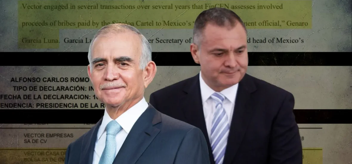 Genaro García Luna, exsecretario de Seguridad de Felipe Calderón sentenciado por sus vínculos con el narcotráfico, recibió sobornos del Cártel de Sinaloa a través de Vector Casa de Bolsa –de Alfonso Romo, jefe de la Oficina de la Presidencia de Andrés Manuel López Obrador–, según el Departamento del Tesoro de Estados Unidos