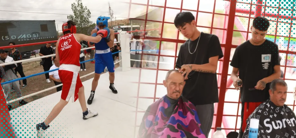 En el marco del festival, el alcalde entregó guantes de boxeo nuevos a los alumnos del Centro Comunitario Anapra, donde también se impartieron talleres de corte de cabello y grafiti.