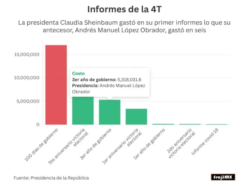 El costo de este informe que protagonizó Claudia Sheinbaum equivale a seis de los que hizo Andrés Manuel López Obrador durante su sexenio.