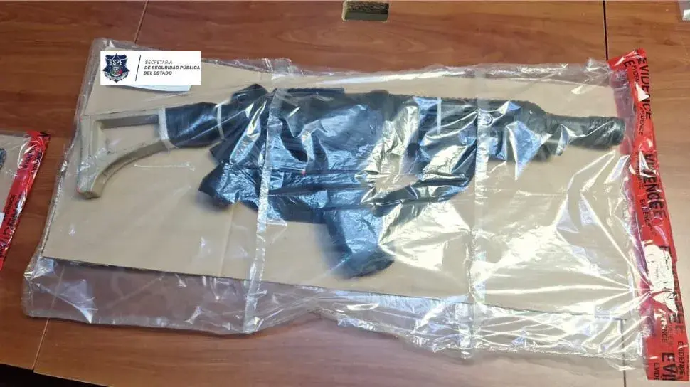 Durante el operativo realizado por los agentes estatales en conjunto con otras corporaciones policiacas, además se aseguró un vehículo compacto color dorado con reporte de robo, un arma tipo fusil y un arma de tipo pistola de utilería.