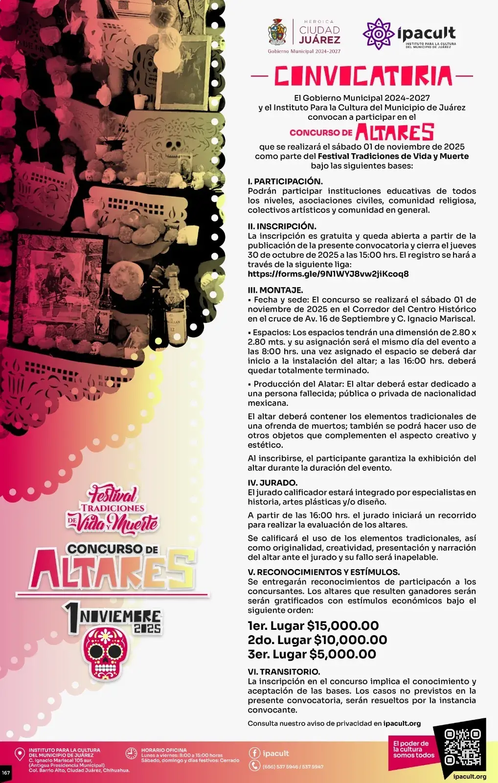 Los manifestantes formarán parte del Concurso de Altares que promueve el IPACULT, el cual tendrá su sede en el Corredor del Centro Histórico, en el cruce de las calles Ignacio Mariscal y la avenida 16 de Septiembre.