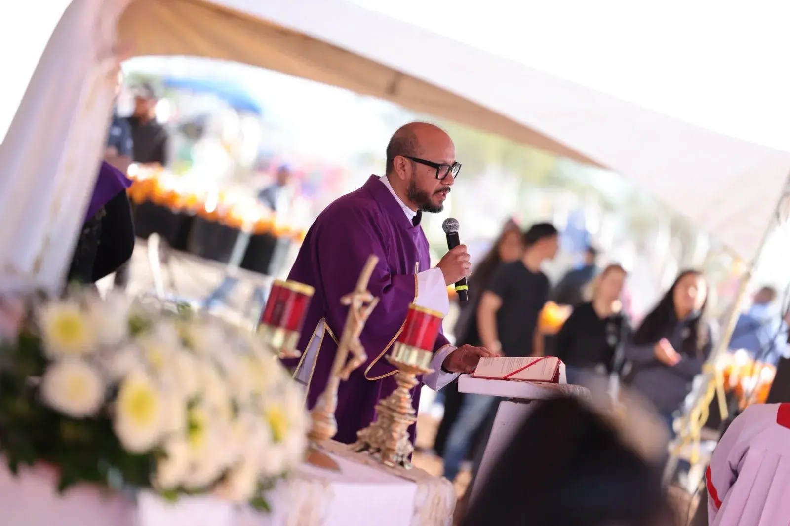 Durante la ceremonia religiosa, el sacerdote expresó que este día se conmemora a los difuntos, pero también a los vivos, luego de que Jesucristo también venció a la muerte.