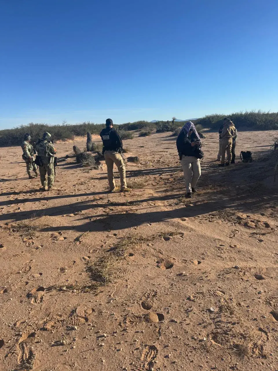 Durante ese operativo se inspeccionó una zona desértica mediante recorridos pedestres, para identificar indicios relacionados con el caso, intervención en la que participaron la Agencia Estatal de Investigación, personal pericial, áreas de antropología y diversas corporaciones federales.