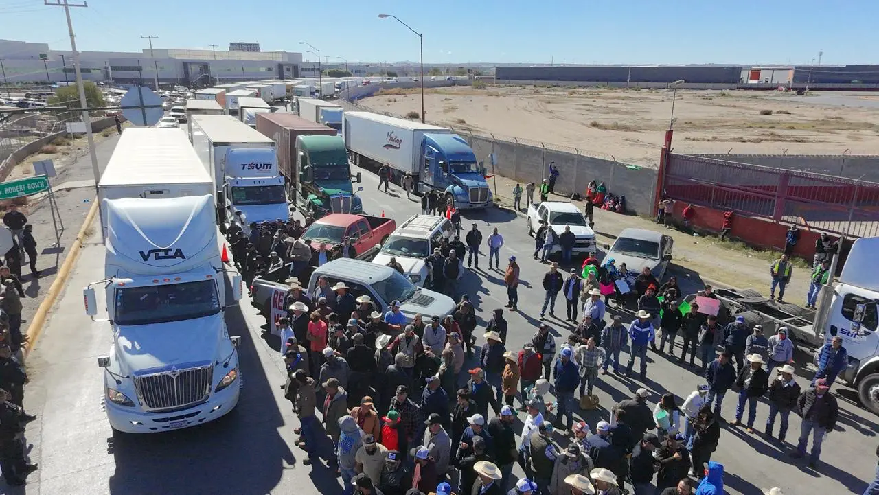 Desde las 8 de la mañana de este lunes, cientos de campesinos bloquearon los accesos de la Aduana de Ciudad Juárez, para exigir la intervención de autoridades federales ante lo que consideran una crisis agraria que amenaza la producción nacional de alimentos.