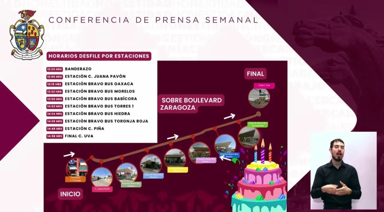 Dijo que las cinco temáticas de este año buscan recuperar momentos históricos, con símbolos locales que conectan con la memoria de los juarenses, las cuales son: “Feliz Cumpleaños Juárez”, «Celebremos nuestra ciudad», “El Chamizal», «Estado invitado” y “Juárez sin Fronteras”, segmentos que integrarán 15 vestuarios especiales.