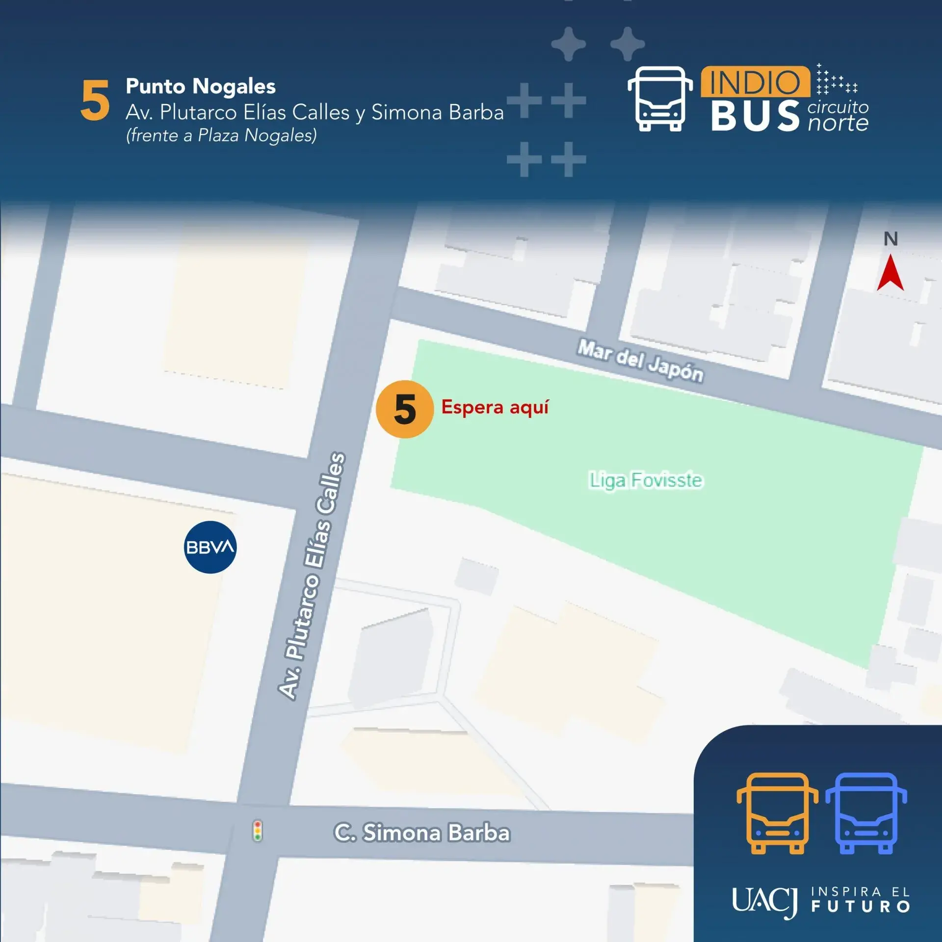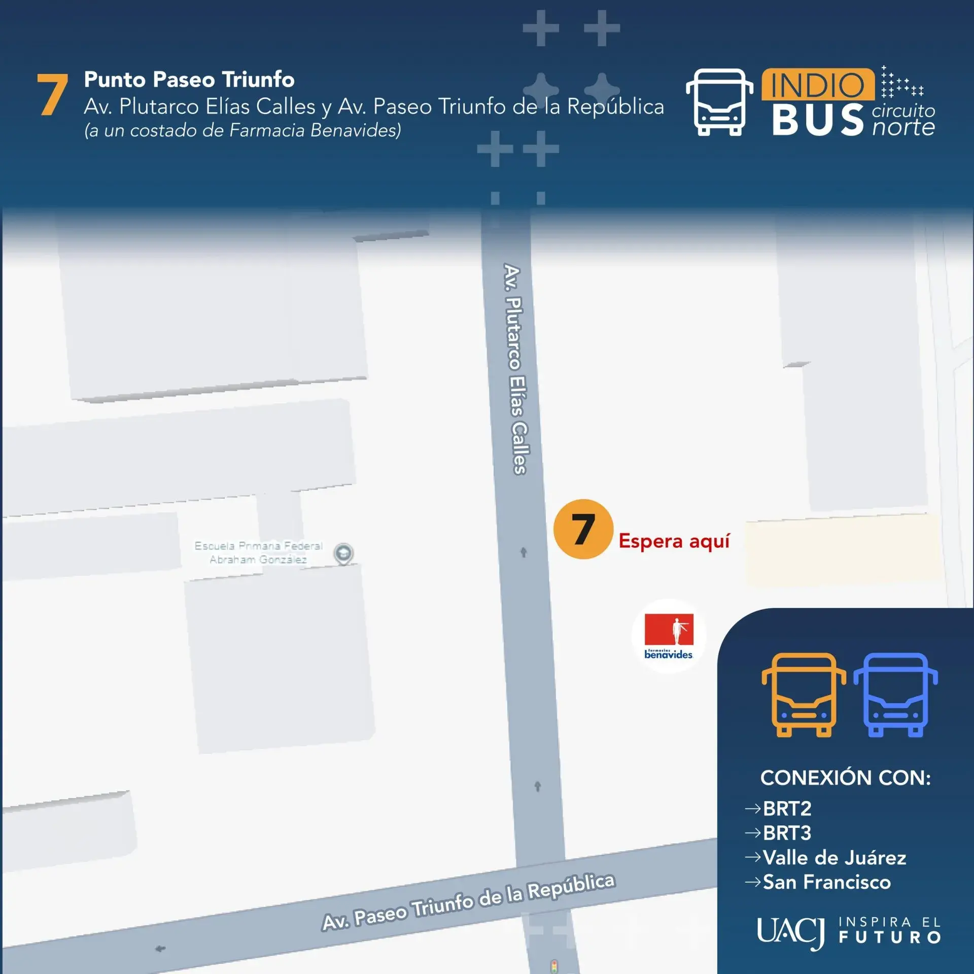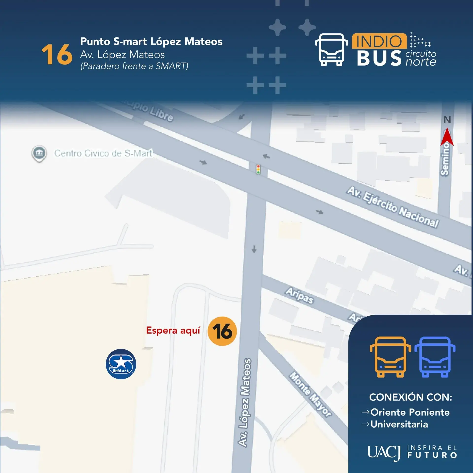 El circuito transitará por Plutarco Elías Calles, López Mateos, Eje Vial Juan Gabriel, bulevar Óscar Flores, Ejército Nacional, Simona Barba, Avenida de la Raza, Paseo Triunfo de la República y Hermanos Escobar, con paraderos definidos.