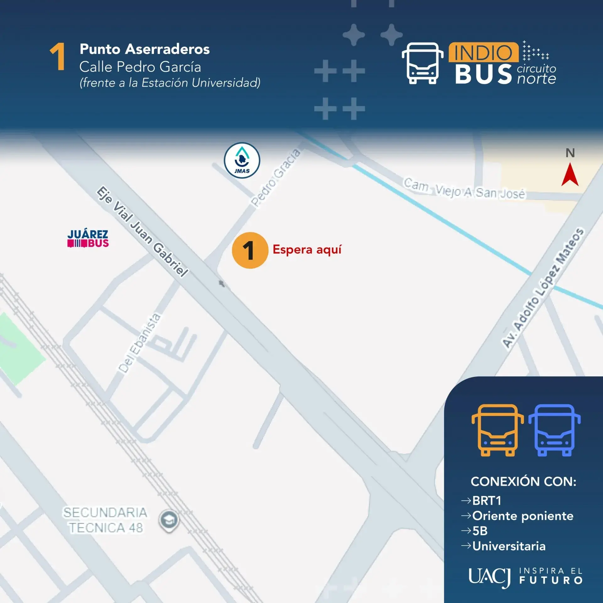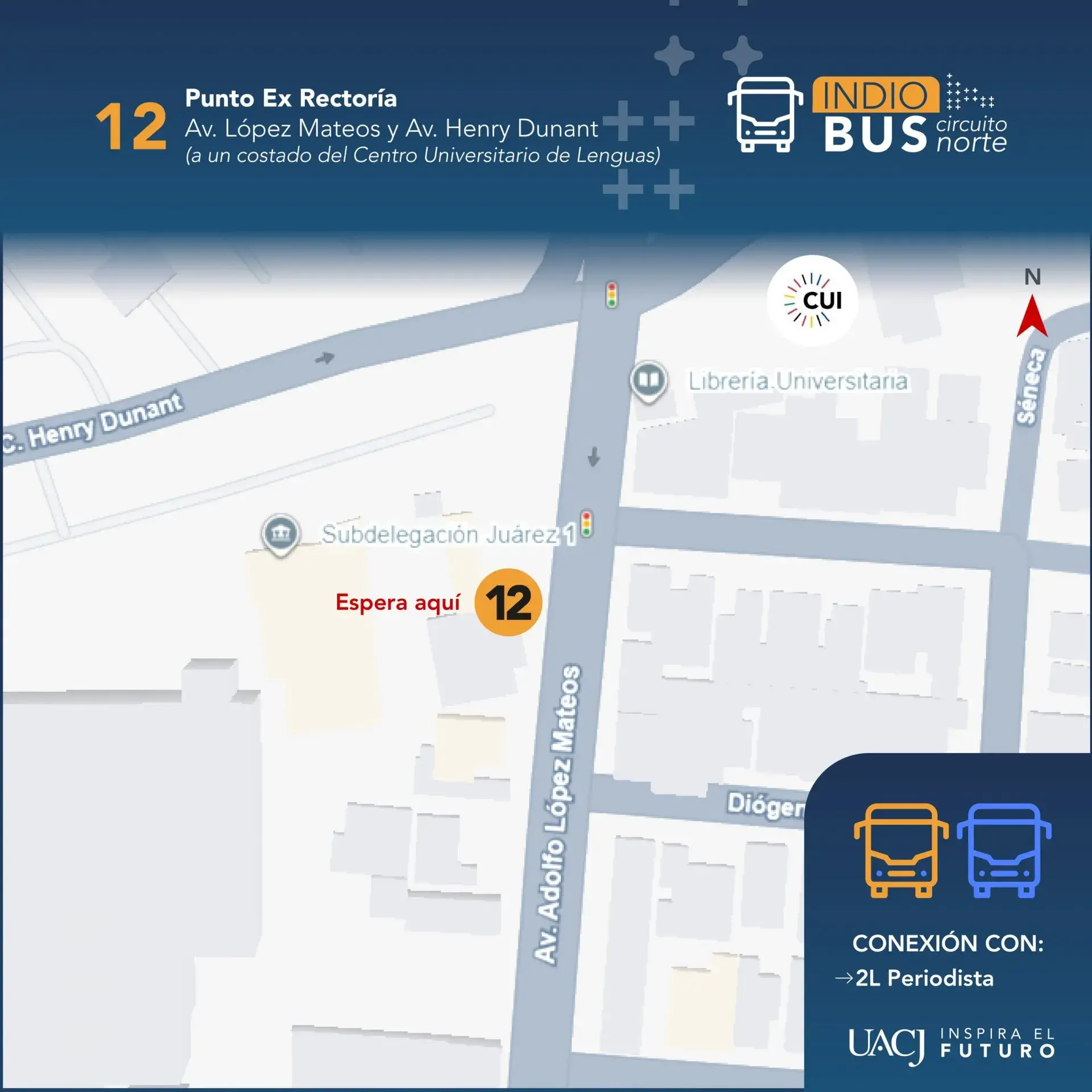 Tras la demanda de la comunidad universitaria por la falta de transporte institucional y público en los campus norte, autoridades de la Universidad Autónoma de Ciudad Juárez (UACJ) informaron que a partir del 19 de enero iniciará el servicio del Indio Bus y el Circuito Universitario.