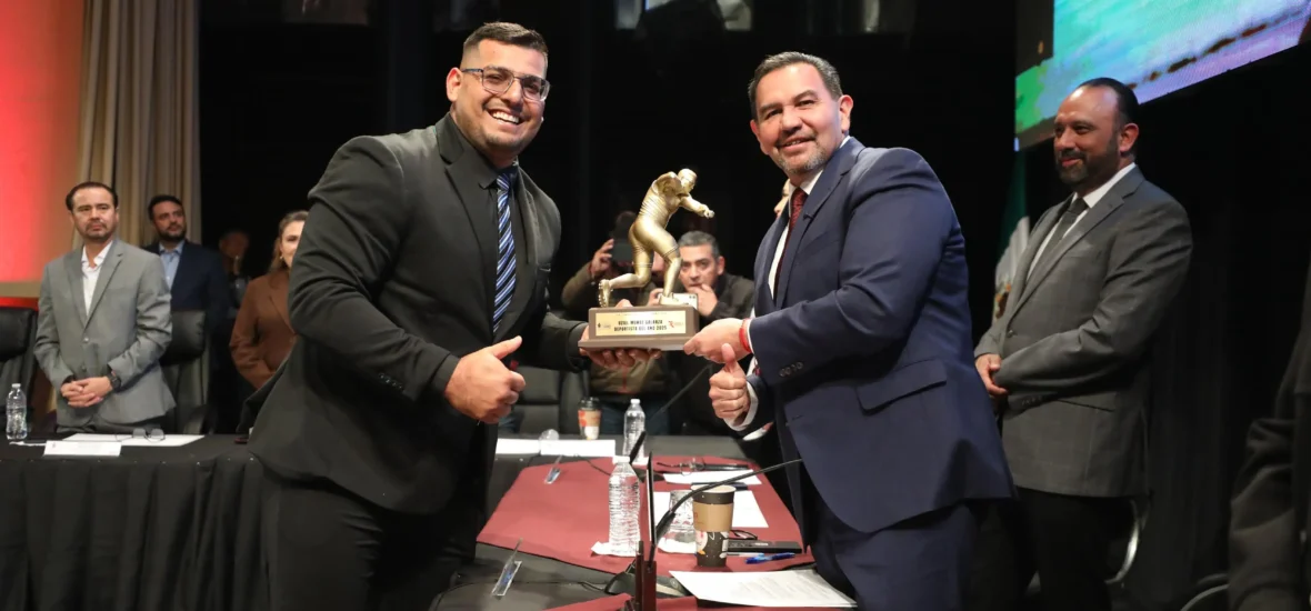 Entre las distinciones otorgadas, el lanzador de bala, Uziel Muñoz Galarza fue reconocido como «Deportista del Año 2025», quien sobresalió, tras recibir la presea Agustín “Cheche” Álvarez, reconocimiento que posicionó su nombre como una de las figuras más influyentes en el deporte juarense.