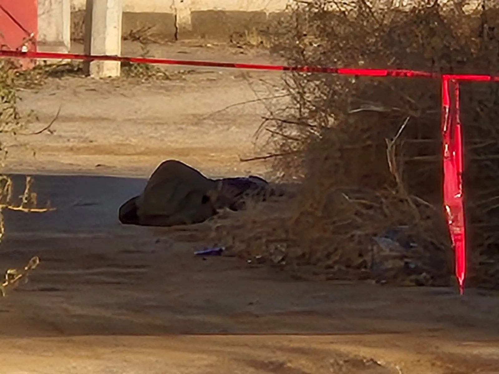 Transcurrieron tan solo poco más de tres horas cuando la segunda víctima mortal del día fue localizada tirada sobre la vía pública en una vialidad de terracería del suroriente de la ciudad y fue un ciudadano del sector quien reportó el hallazgo.
