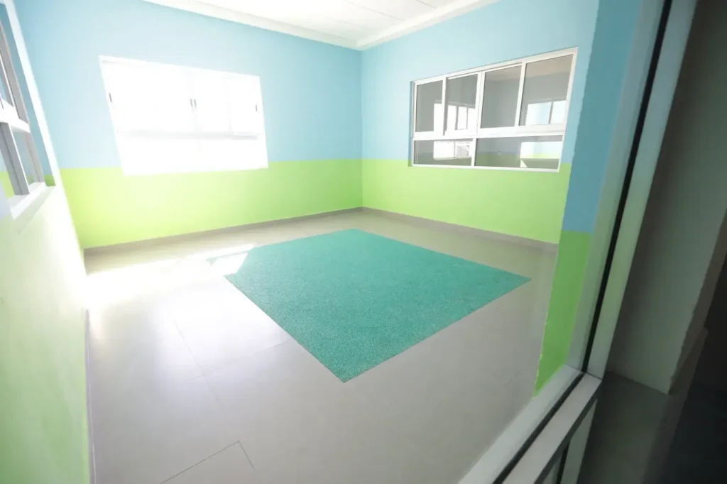 Las instalaciones incluyen áreas de preescolar, lactantes, maternales y zona de esfínteres, así como un patio central con superficie adecuada para el juego seguro, elemento clave en el desarrollo físico y emocional de los pequeños usuarios.