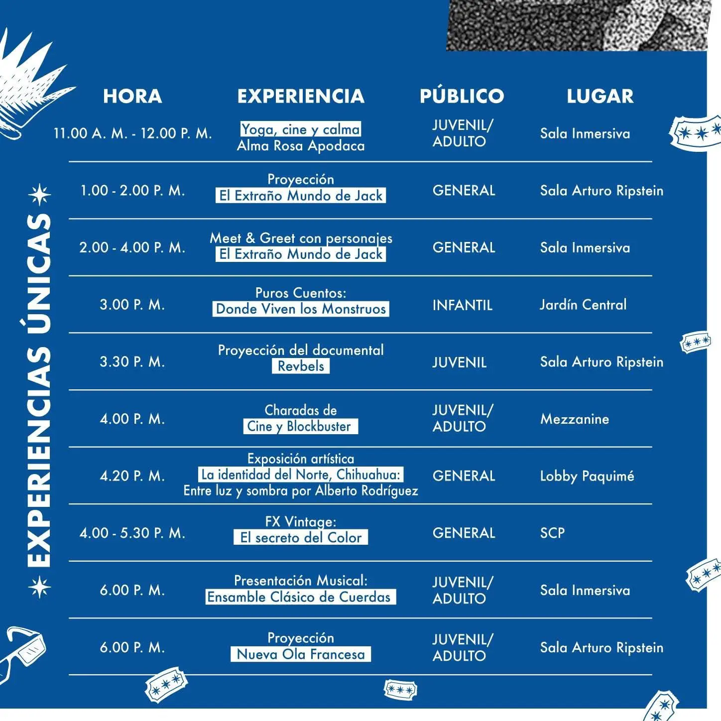 El evento será de entrada libre, en un horario continuo de 11 de la mañana a 7 de la tarde, con actividades inmersivas que busca convertir el recinto en un espacio donde visitantes creen su propio maratón cinematográfico, mediante dinámicas accesibles orientadas a fortalecer la convivencia comunitaria.
