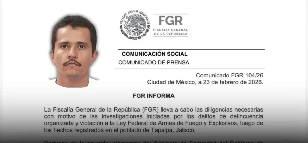 La Fiscalía General de la República (FGR) dio a conocer que, como parte de las diligencias derivadas de los hechos registrados en Tapalpa, Jalisco, el cuerpo de “El mencho” fue identificado genéticamente tras los trabajos periciales realizados por personal de la Agencia de Investigación Criminal (AIC).