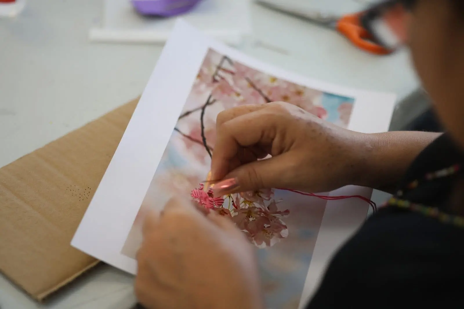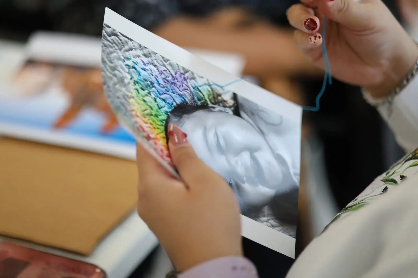 Las obras fueron creadas por mujeres de distintas edades y oficios, entre ellas amas de casa, profesionistas, jubiladas y trabajadoras de diversos sectores, quienes exploraron historias personales a partir de imagen intervenida con hilo.
