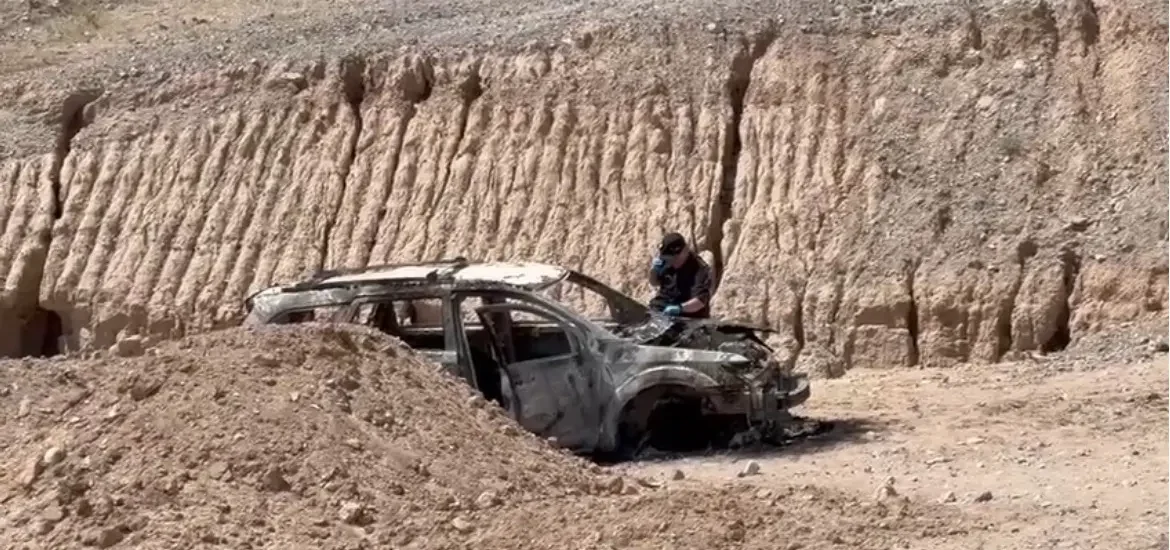 El hallazgo se reportó en el cruce de las calles Arroyo Café y Cerro Escondido, luego de que vecinos realizaron un llamado al 911 tras observar la presencia de fuego en la zona, donde horas después localizaron el vehículo quemado y con aparentes restos humanos en su interior.