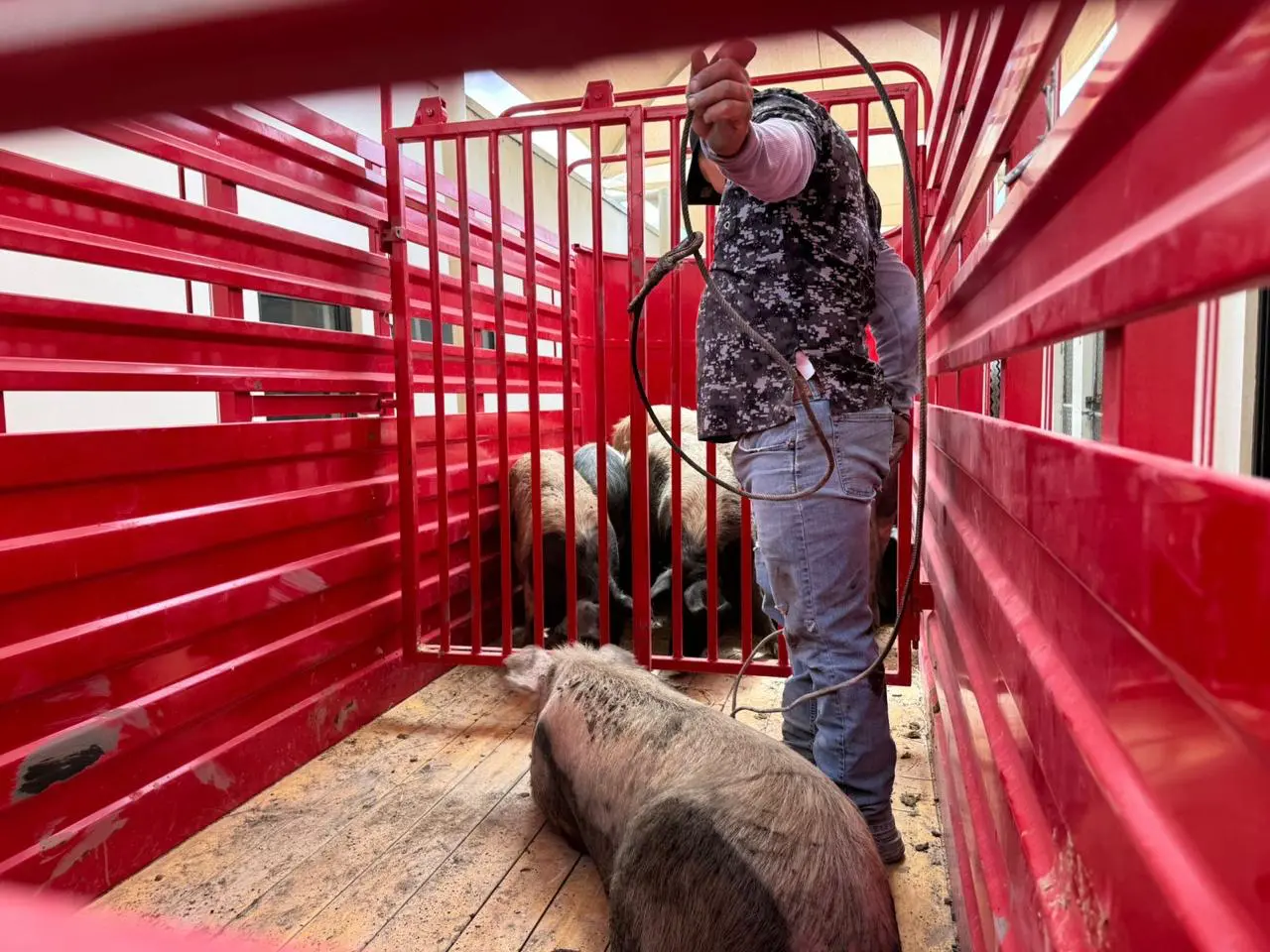 La Dirección de Atención y Bienestar Animal resguardó a 30 cerdos, ocho gallinas y un perro, los cuales fueron revisados por veterinarios y posteriormente entregados a su propietario tras permanecer bajo observación médica.